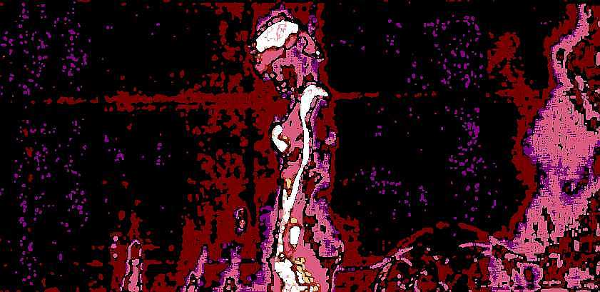 He is stupified and turns to looks at her. The vision: he, the arrested devil, she, the saving grace, naked, hurt, but not defeated and avenging her torture and mine. They are both motionless, his arm still raised and hers holding his.