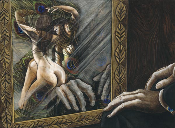 The way the story goes The incredible thing happens. Highly unexpected, highly unforeseen, highly undesirable. Fucking desirable, as God knows. She offers herself to me. This lost angel, pale faced with its black lining, looks at me with yearning in her face and presses her lips to mine. She wraps her arms around me and clenches me as if she would sink otherwise. I am terrified. I respond but I have to act the part. I would love to become the part and conquer her, but I cannot. I am impotent. It makes me mad, it drives me crazy, but I must push her away. I whisper that I cannot, that I should not. She stares at me, lost, lost in the desert, with no direction home. She looks at me and her empty gaze slowly becomes full, fills up with contempt. Without a word, she readjusts her dress, picks up her handbag and leaves. It is I who am lost, speechless. I drop down in the nearest chair and just sit there motionlessly, lifelessly, eternally. An hour has passed when I look at the clock. She is on my mind, more than ever, but the thought has lost any consolation. Still, I have to see her, so I climb the stairs to my observation chamber. She is there, in front of the mirror, my dark, lost angel. Her eyes are closed. She is stark naked. Her body is white as death, unadorned, smooth, her abdomen bare. Her nipples are red like blood. She is masturbating in front of mirror. My body reacts. Impotent with her in the flesh, my member now swells. I have never done this before, but there is no resisting now: I lower my trousers and stimulate myself with abandon. Was it my piercing cry when I came? Was it her that smashed the mirror to destroy her mirror image? What does it matter! The fact is that I found her in my chamber with blood smears on her legs, arms and hands from the broken glass left in the frame and on the floor. She screamed, cried, hit me where she could, kicked me in the crotch. I became oblivious. Was she a bad dream? I have not seen her again. I have had the mirror replaced. Her apartment, however, I left untouched, with the bed unmade, the content of the wardrobe waiting for its wearer. She might yet return. |